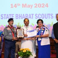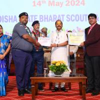 Rajya Puraskar's ceremony is a ceremony of recognition that is organized every year. We all knows about the ceremony. Hon'ble Governor Sj. Raghubar Das ji awarded to the Scouts, Guides, Rovers, Rangers, Cubs & Bulbuls with certificates. Moreover, the best units and districts were awarded on this occasion. Dr. K.P. Mishra, State Chief Commissioner, Odisha STate BSG, Sj. Santosh Kumar Tripathy, Chief Adviser to the Governor, Dr. Smt. Minati Behera, Chairman, of the Women Commission, and other dignitaries were present. Some of the Unit Leaders get awarded with the Service Star Award. Around 750 nos. of awardees were there to witness the ceremony.