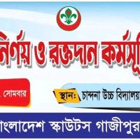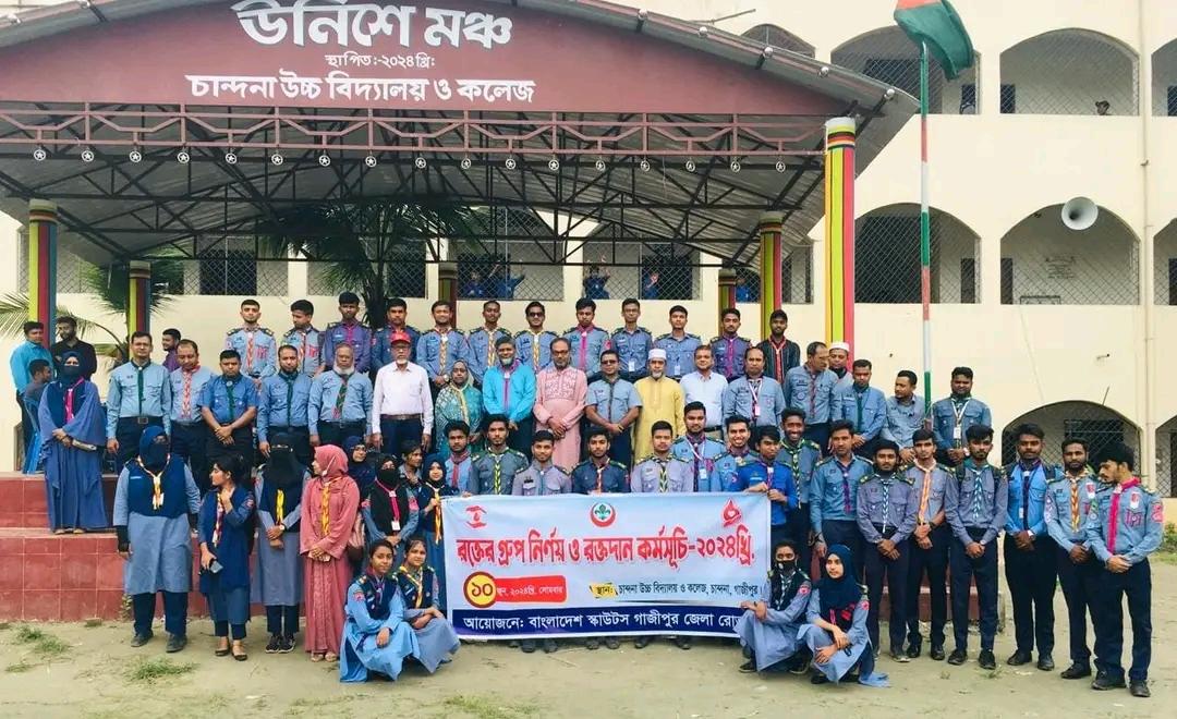 বাংলাদেশ স্কাউটস গাজীপুর জেলা রোভার কর্তৃক আয়োজিত রক্তের গ্রুপ নির্নয় ও রক্তদান কর্মসূচি। ১০ জুন ২০২৪ গাজীপুর জেলা এর চান্দনা উচ্চ বিদ্যালয় ক্যাম্পাসে এট অনুষ্ঠিত হয়। এখানে প্রধান অতিথি হিসাবে উপস্থিত ছিল্বন প্রফেসর মাসুদা সিকদা, কমিশনার গাজীপুর জেলা রোভার।