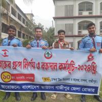 বাংলাদেশ স্কাউটস গাজীপুর জেলা রোভার এর উদ্যোগে ব্লাড গ্রুপিং ও রক্তদান কর্মসূচি-২০২৪ অনুষ্ঠিত হয়েছে। চান্দনা হাই স্কুল এন্ড কলেজ মিলনায়তনে অনুষ্ঠিত এই কর্মসূচি উদ্বোধন করেন বাংলাদেশ স্কাউটস গাজীপুর জেলা রোভার এর সহ-সভাপতি ও টঙ্গী সরকারি কলেজের অধ্যক্ষ প্রফেসর রফিকুল ইসলাম।