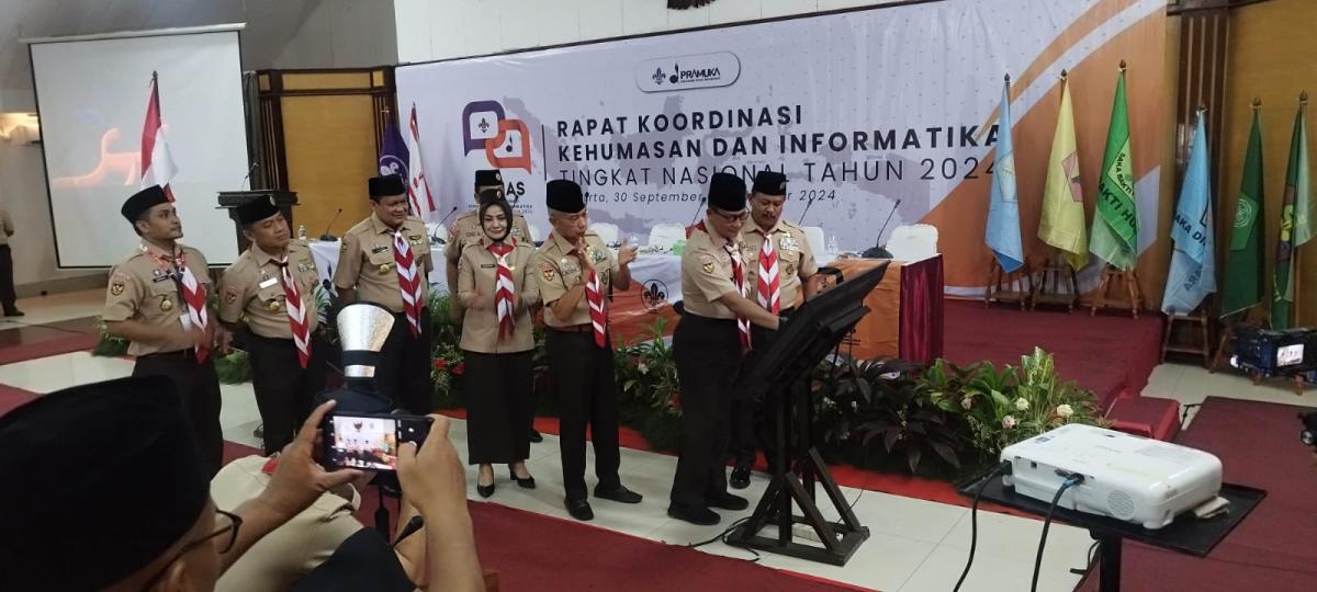 Penekanan Layar menjadi simbol dibukanya secara resmi Rapat Koordinasi Kehumasan dan Informatika Tingkat Nasional Tahun 2024 pada acara pembukaan yang diisi dengan suguhan Tari Jamkrida Ulangka, Pengalungan Tanda Peserta secara simbolis dan Penyerahan Hadiah bagi Pemenang Lomba Asia-Pacific Regional Scout Photo Contest 2021 for the winning the Bronze Prize yang diserahkan oleh Kak Kwarnas didampingi Sekjen dan para Waka Kwarnas.