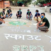 रोवर स्काउट एवं गाइड पेंटिंग कर दे रहे बचाव का संदेश