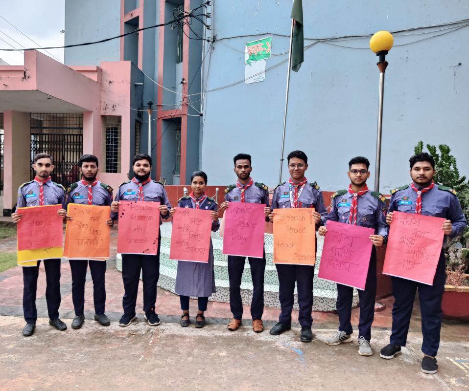 বিশ্ব শান্তি দিবসে রাজশাহী পলিটেকনিক ইনস্টিটিউট রোভার স্কাউট গ্রুপের আয়োজনে "শান্তির প্রচার" ফেস্টুন প্রদর্শনি করা হয়।