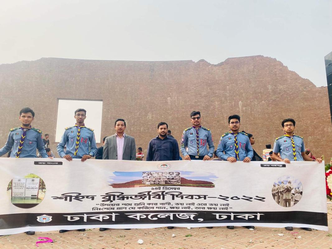 ১৪ই ডিসেম্বর বুদ্ধিজীবী দিবস উপলক্ষে ঢাকা কলেজের পক্ষ থেকে রায়েরবাজার বদ্ধভুমিতে ফুল দিয়ে শহিদ বুদ্ধিজীবীদের শ্রদ্ধাভরে স্মরণ করা হয় সাথে ছিলো ঢাকা কলেজ রোভার স্কাউট গ্রুপ।