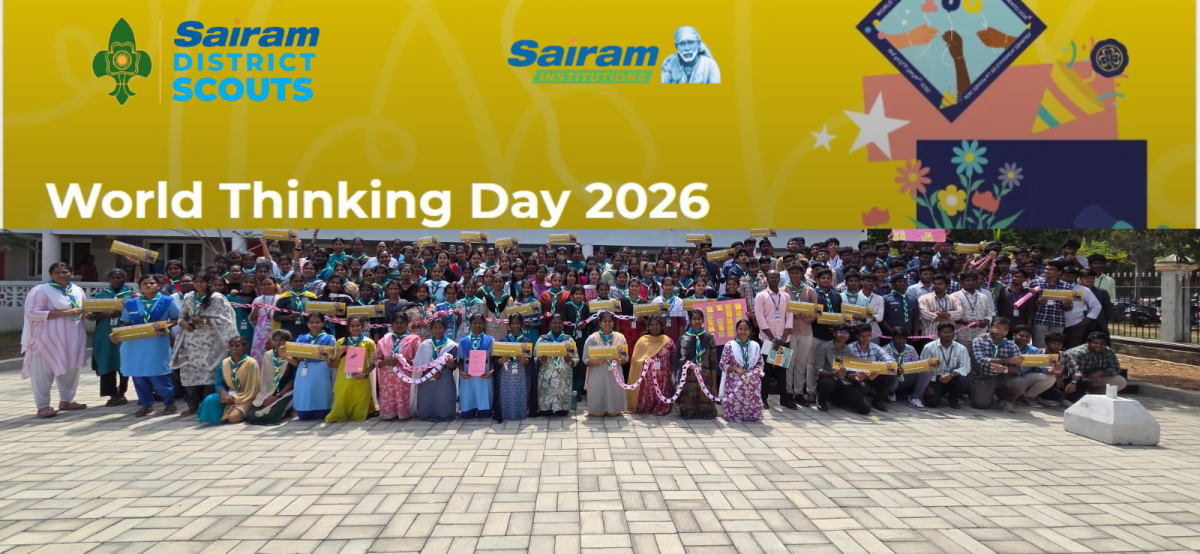World Thinking Day 2026 was celebrated with great enthusiasm by Sairam District Scouts in association with Sri Sairam Engineering College. The event encouraged students to reflect on global unity, leadership, and social responsibility through interactive activities, teamwork, and service initiatives, inspiring young minds to contribute positively towards building a compassionate and sustainable society.