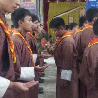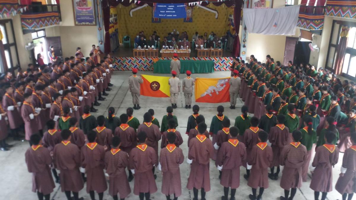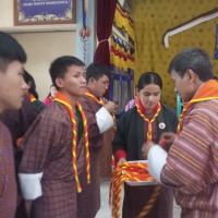 First, all the teachers and students gathered at the MPH to receive the chief guest, who was escorted to light the butter lamp. This was followed by the singing of the national anthem and the Scout anthem.