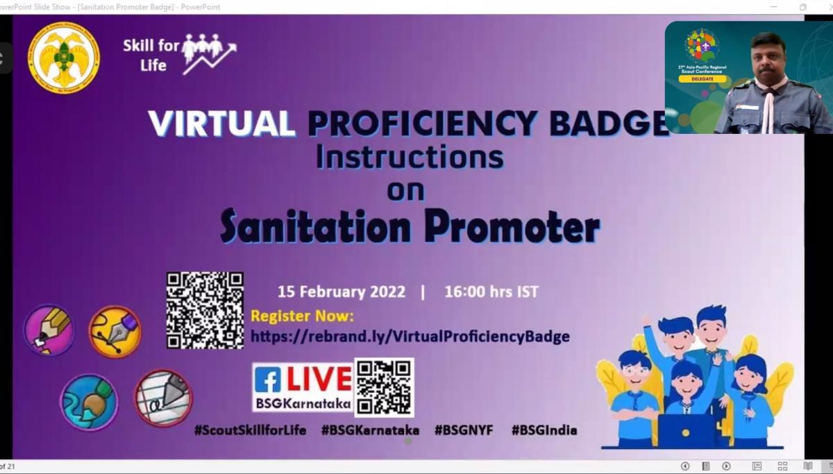 15 Feb: BSG Karnataka under the scheme of Scout Skillo Organized a webinar on Proficiency Badge SANITATION PROMOTE.
