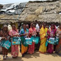 The DAV Special Relief Team was guided to the marooned area by a local volunteer Mr. Ratnakar Pallai and his journalist brother Mr. Jeenu kumar Pallai The team was the ist Agency to reach the area and it was received very warmly by the local communities They were joined by the members of a local voluntary organization named 'May I Help You to expedite the programme The joint team covered as many as seven villages 6amely Gomundi, Tubuka, Gurubiri. Khatikhai, Gobardhuli, Biripadara. Chari Chhaka, & Janhikuda of Krushna Prasad block in Puri Distrito. The Herculean task of identifying the actual beneficiaries was sorted out by the local voluntary group They also handled the pressure of petty leaders and the threat of local goons in a very tactful manner The joint team distributed Relief Bags to the worst hit 350 families