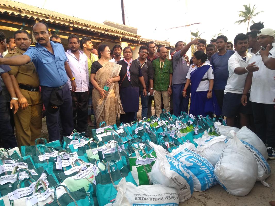 Scout and Guides of DAV Public school Berhampur exhibited its solidanty with the people affected by the devastating Cyclone Fony through a Relief Distribution programme on D1 08-05-2019 The programme initiated by school was generously assisted by some kind parents & teachers through cash and kind which enabled the school staff to prepare 500 Relief bags each containing bread flattened rice sugar biscuits, water bottle, candles and match boxes A special Relief Team was formed under the leadership of Principal in charge Mrs Dharashree Padhy along with Guide Captains Ms. Swapna Panigrahi, Ms. Sunita Nayak. Scout Master Mr. Kedarnath Mahapatro & Mr. Jagadish Bishoyi, NCC Army leader Mr. Manas Rarjan Panda, NCC, Navy leader Mr. Vincent Dash, teachers Mr. Sameer Panigrahi, Mr. Dilip Behera, Mr. Ashok Kumar Mishra, Mr. Dugra Prasad Sahu, Mr. Susant Dash, Mr. Udaya Nath Padhy and Non-teaching staff Mr. Jagabandhu & Mr Narayana to carry out the programme in an effective way