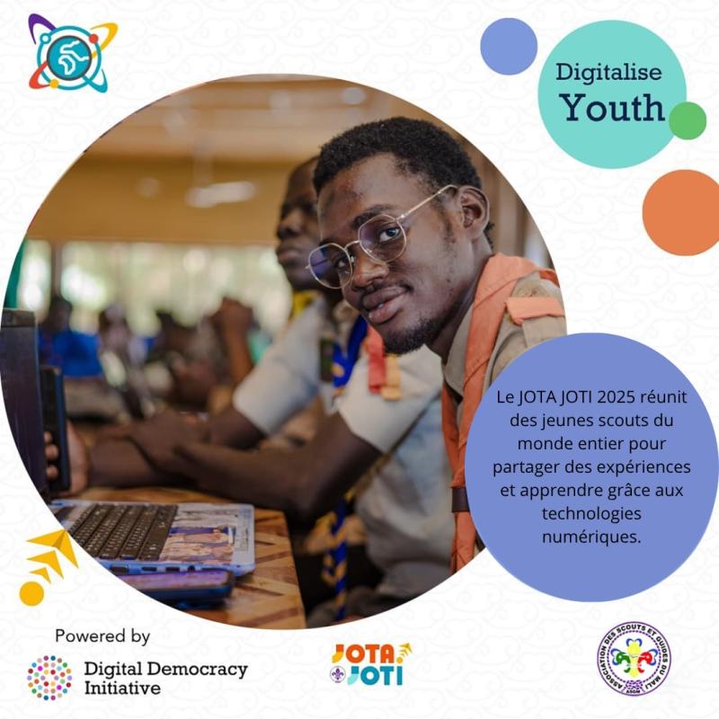 Avec l’implication du Projet Digitalise Youth ! Le scoutisme malien marque sa présence dans le monde interconnecté du JOTA JOTI ! En background, il y a une reconnexion ontologique pour analyser les tenants et aboutissants du Vivre Ensemble au Mali. Oui, parce que le thème de l’événement au plan national est : l’intelligence artificielle au service du vivre ensemble au Mali. Avec la pédagogie participative de l’éminent Professeur et Maître de Do Iba N’Diaye, la conférence a permis aux campeurs de s’approprier leur thème et de comprendre les formes d’expression traditionnelles du vivre ensemble au Mali. Ensuite, dans le respect total de la créativité des jeunes, les ateliers par groupe scout ont permis d’avoir différents types de contenu numérique générés par l’IA : poster, musique, chant, vidéo. Eh oui, tout comme le verbe divin ordonne la création, les jeunes expriment minutieusement à l’intelligence artificielle ce qu’ils désirent obtenir, et celle-ci le leur rend à la perfection. A travers leurs productions, ce sont les aspects de la diversité malienne (ethnique, religieuse, rang social) qui s’imbriquent pour former le tissu social malien. Aidez nous à relayer ces témoignages sur un Mali UN dans la DIVERSITE.