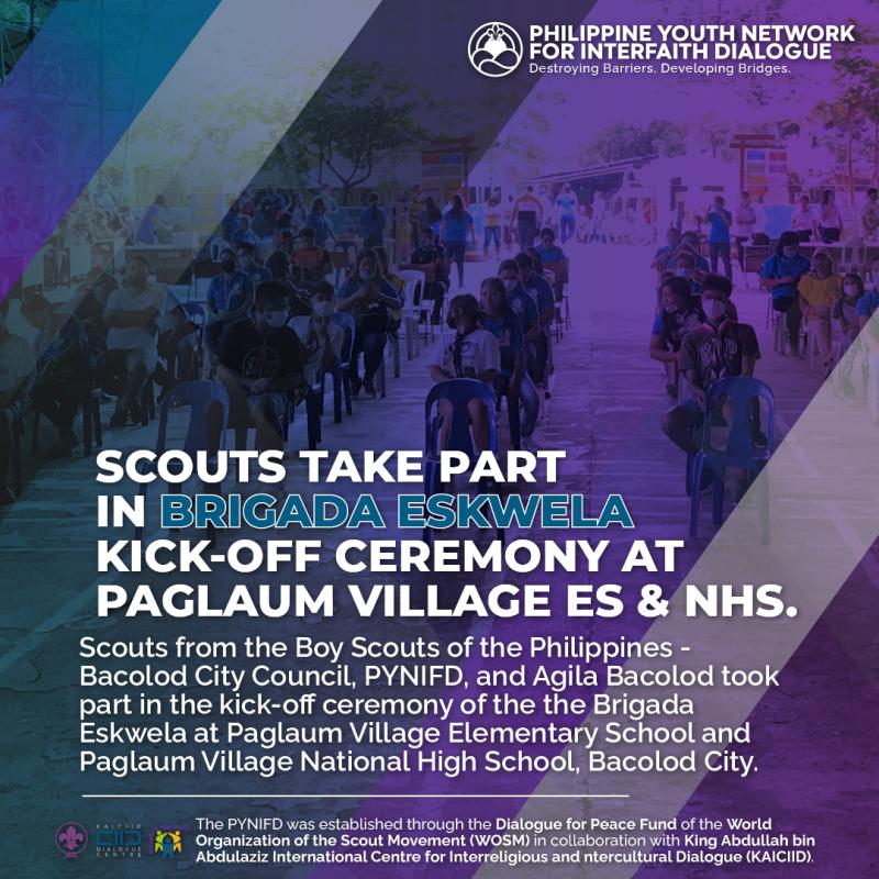 The Scouts from the Boy Scouts of the Philippines Bacolod City Council, Philippine Youth Network for Interfaith Dialogue, and Agila Bacolod took part Paglaum Village Elementary School and Paglaum Village National High School on August 5, 2022.