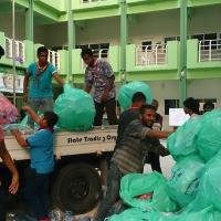 COLLECTION OF EMPTY WATER BOTTLES AFTER WATER CRISIS IN MALE CITY BY SCOUTS