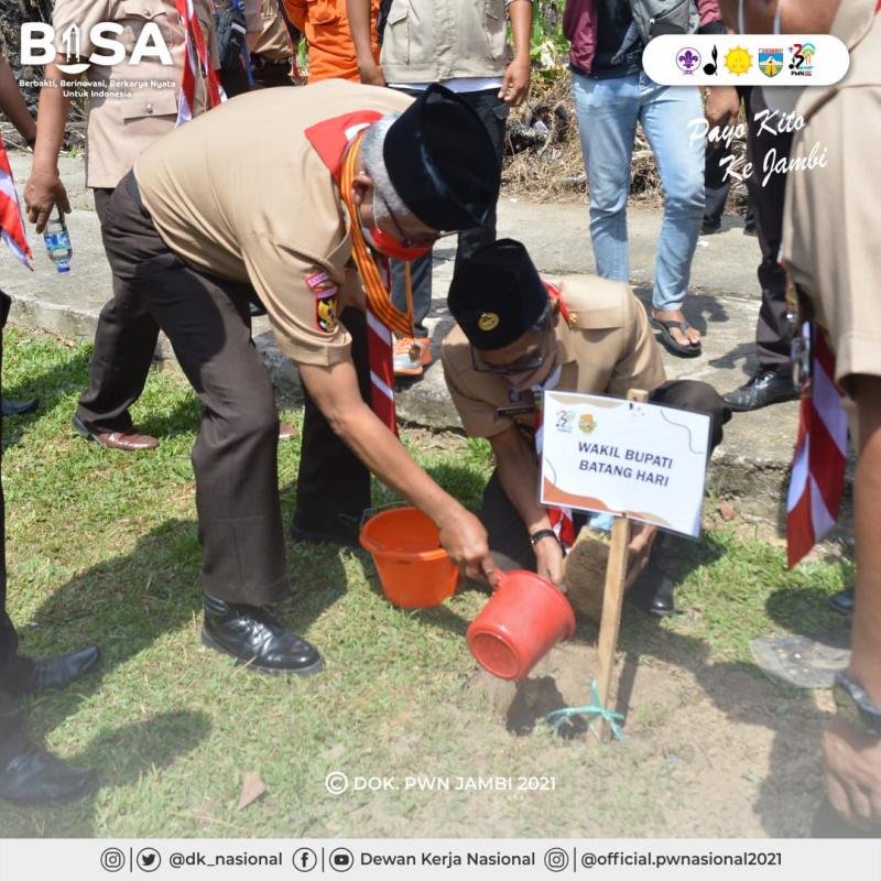On the first day of the Perkemahan Wirakarya Nasional (PWN) 2021, the participants carried out physical activities that are tree planting projects.
