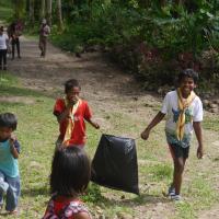 Agta Cimarron Scouts (SWA Project ULAP) of the Indigenous Community of Sitio Bongcao, Curry, Pili, Camarines Sur, Bicol Region, Philippines accumulated a full bag of trash along the trail. Young Scouts enjoyed learning the importance of cleaning their community, preserving the beauty and cleanliness of their area in an engaging way.