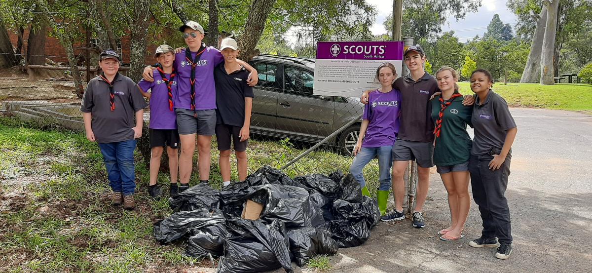 Several 1st Rivertrail Scouts took part in the South African National Litterless Campaign on 26 March 2023. We chose toc lean up litter along the Braamfontein Spruit (River) that flows past our scout hall following recent flooding of the river. The specific area chosen is along the spruit where the weekly Park Run occurs. Over 14 bags of rubbish, mainly plastic, was collected during the course of the morning.