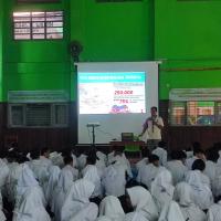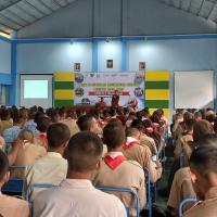 Pramuka memberikan sosialisasi Penanggulangan Bencana pada siswa baru sekolah dalam kegiatan Pengenalan Lingkungan Sekolah (MPLS)