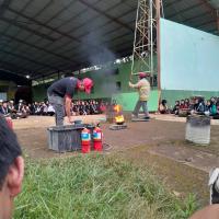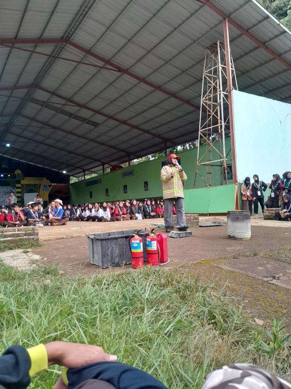 Kegiatan sosialisasi ini dilaksanakan oleh petugas Pemadam Kebakaran yang memberikan penjelasan langsung kepada peserta Perkemahan Wirakarya Cabang Kabupaten Bandung.