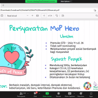 Dan juga menjelaskan tentang Proyek, Platform SDGs Hub WOSM, MoP Ring Badge dan Penghargaan Messengers of Peace Hero oleh Kak Fakhir Naufal, Kak Muhammad Rifai Sahida, dan Kak Erwin Samuel Ramli kemudian kegiatan tersebut ditutup dengan sesi tanya jawab