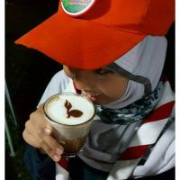 In his spare time or whenever he was not busy with the water activities, he serves customer with many type of coffee. Mostly Indonesian local coffee from different provinces. Not only he is very skillful to brew, blend, and made coffee and coffee drinks like cappuccino, but he also decorated the top of the cappuccinos cup with the World Organization of the Scout Movement (WOSM) logo and the Gerakan Pramuka – the Indonesia Scout Movement – logo.
