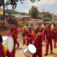 Ugandan Scouts mobilizing people and creating awareness using brass band