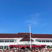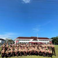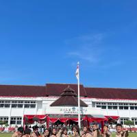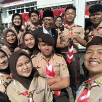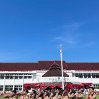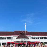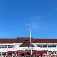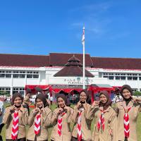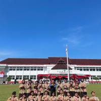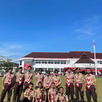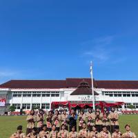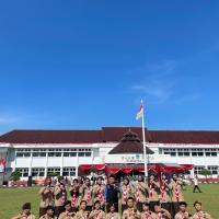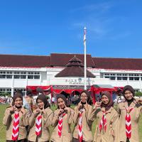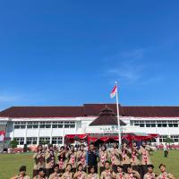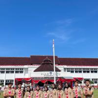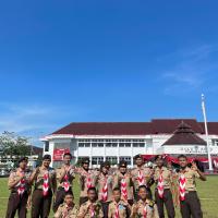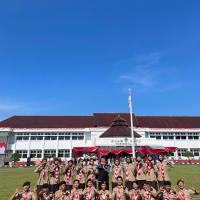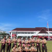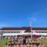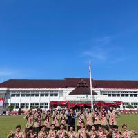 Kami hadir dengan penuh semangat dan kebanggaan mengenakan seragam Pramuka lengkap. Upacara berlangsung dengan khidmat, dihadiri oleh berbagai unsur pemerintahan, TNI, Polri, serta organisasi masyarakat. Suasana terasa sangat nasionalis dengan hiasan merah putih yang melambangkan semangat persatuan Indonesia.