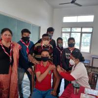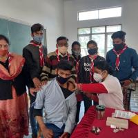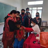 3 January: Scout guide and scouter guide while cooperating in vaccination at Happydays Vidyalaya, Shivpuri.