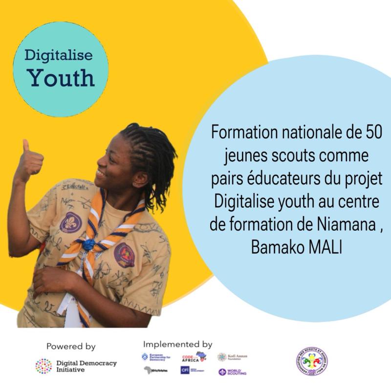 Du 21 au 23 juin 2025, l'atelier national des pairs educateurs du projet Digitalise Youth s'est tenu à Niamana, réunissant 50 jeunes scouts et guides du Mali.