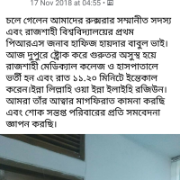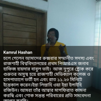 He was admitted to Rajshahi Medical College Hospital on 17 November 2018 after suffering a stroke and he died at 11.20 pm at the hospital on that day. On behalf of the Rajshahi University Rover Scouts Group, we extend our heartfelt condolences to his bereaved family.