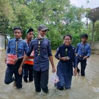 Our small upazila Kulaura was not spared from the terrible flood that occurred in Sylhet, Bangladesh in 2022. Seeing the helplessness of the people of the area, we could not hold ourselves to our position and rushed to stand by their side and help them. We succeed with the support of local dignitaries. Sylhet was completely affected by the flood of 2022. Our area was not spared from this great deluge.As a scout we continue our relief distribution program for 3 months with the help of local dignitaries(UNO, MP). With our help, many flood-affected people get a ray of hope. We have made it possible where fresh water and food are just like the midday moon. It should be the aim of all scouts to help people as much as possible in times of danger and calamity without sitting at home. Besides, in the law of scouts, "Scout is friend of all".