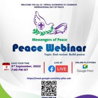 On the occasion of International Day of Peace, A Peace Webinar organised by Bharat Scouts and Guides, Howrah - West Bengal on 3rd September, 2022. This Webinar was inaugurated by Sri Debaditya Chakraborty, Retd IAS and State Chief Commissioner, West Bengal BSG. Smt. Swati Ray, Headmistress of ABSS,Liluah ,Howrah and Sri Rupendra Mohon Sarkar, MoP State Coordinator, BSGWB were present in the virtual platform as guest speakers and spoke on the occasion. Mr.Sumit Mukhopadhyay,DCC,Howrah welcomed the guests as well as participants and . Ms. Ayushi Agarwal, guide of Annapurna Guide Group,Howrah conducted the webinar successfully. The whole webinar was planned by the District Youth Committee and executed by them