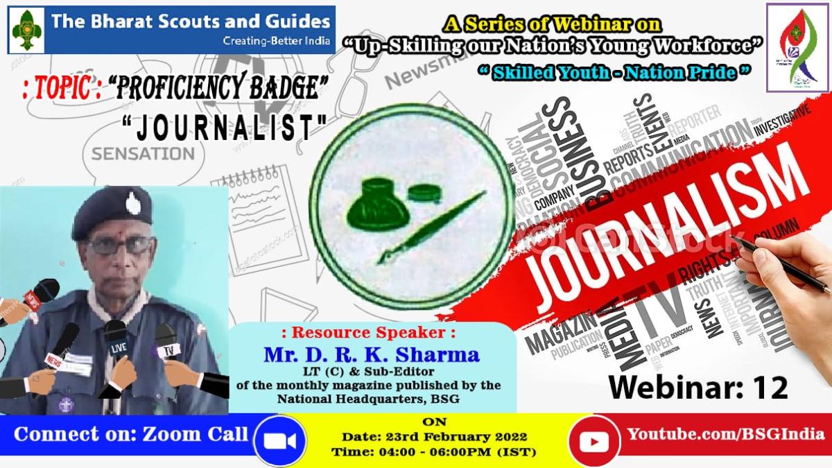 Resource speaker Mr. D.R.K. SHARMA ( LT (c) & Sub-editor of the monthly magazine published by the National Headquarters, BSG gives us brief information about the Proficiency Badge- Journalist.