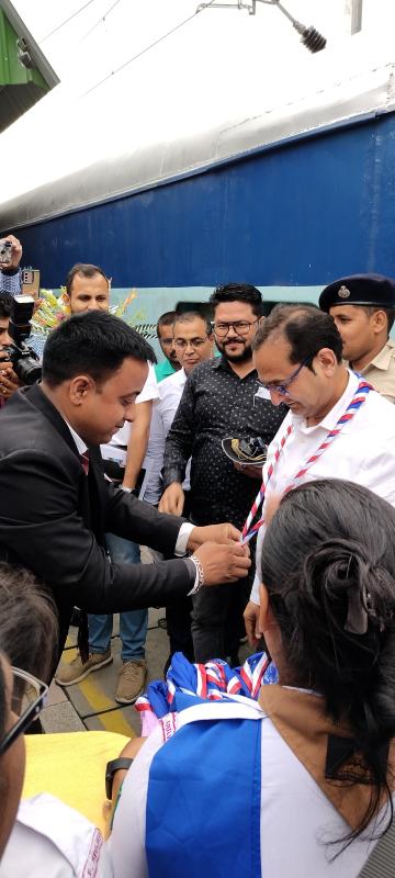 The Bharat Scouts and Guides Alipurduar District Association welcomed the Hon'ble Shri Chetan Kumar Shrivastava General Manager of North East Frontier Railway at Alipurduar Junction Station and other officials on 16th June 2023.