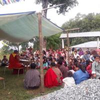 Nachung scouts wash washing of damphu stupa. "May God bless to world "