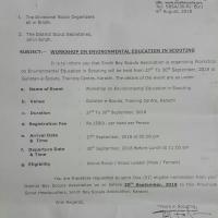 PROVINCIAL SINDH BOY SCOUTS ASSOCIATION (PAKISTAN ) ARRANGE PROVINCIAL LEVEL WORKSHOP ON ENVIRONMENT EDUCATION IN SCOUTING 27 - 30 SEP 2018 AT PROVINCIAL SCOUTS TRAINING CENTER KARACHI CITY