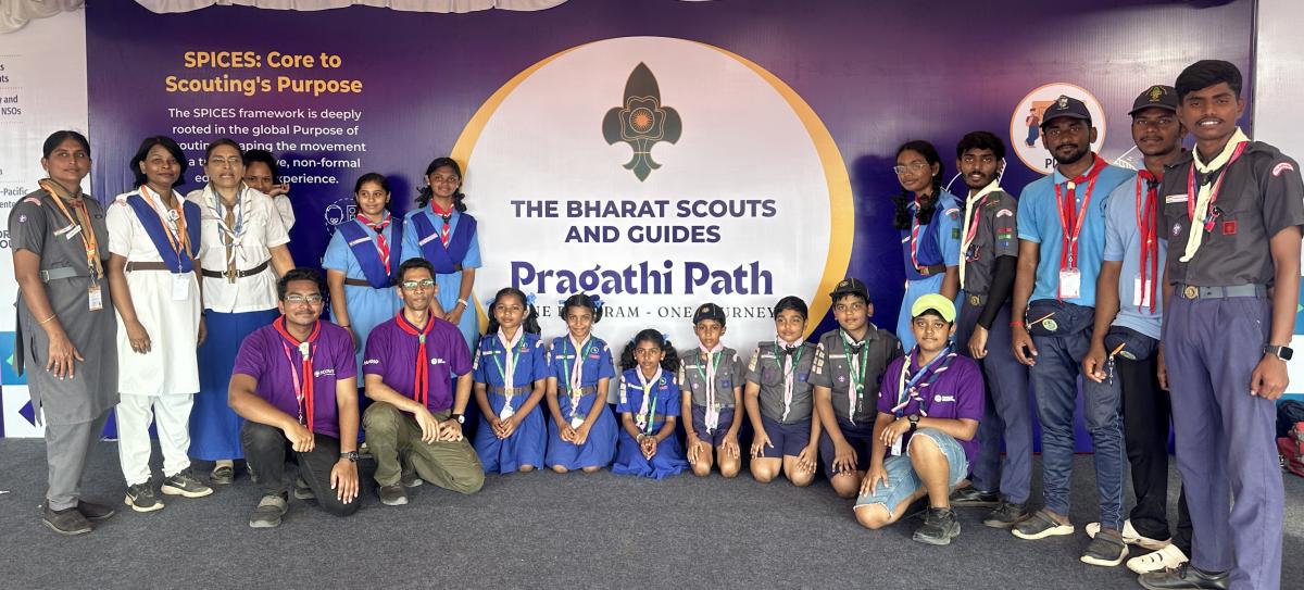 The Diamond Jubilee Jamboree served as a national platform to commemorate 75 years since the unification of India’s various Scout associations into what is now The Bharat Scouts and Guides. As part of the celebrations, the Pragati Path Pavilion showcased the newly developed youth programme, Pragati Path—a curriculum centred on progress and holistic development for every young person in Scouting. Built around the principle of One Programme – One Journey, Pragati Path provides a unified learning experience that promotes equality, inclusion, and meaningful personal growth for all participants.