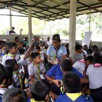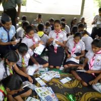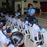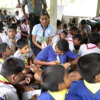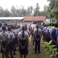 I lined up the scouts, troop wise at the troop ground, taught them about this zero waste environment program, how this campaign would help to make a sustainable environment and I also told them about how I got to know about this program. After giving them the basic idea on this project we all went inside the hall as a heavy rain was about to come. There, our D.C briefed some information about ‘zero waste’. Next, after the distribution of leaflets to the D.C, scout leaders, scouts, and the parents, I taught them all the things that were taught for me by the messenger of peace leaders at our meeting. At last I made an animal face flower pot with an empty plastic coke bottle, together with them. At the end I asked them to gather on 3rd of November, 2019 at Madampe Co-operative Theater to carry out the campaign of making the community aware on ‘zero waste’.