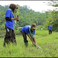di mulai dari sekitar buper kami menanam sekitar 32 pohon untuk penghijauan di area buper, selanjutnya kami bergerak ke sekitar pemukiman masyarakat, untuk menanam sekitar 56 pohon, selanjutnya kami menanam di pinggir tebing dan jalan raya sekitar 87 pohon, kami tidak hanya menanam, tapi kami juga memupuk nya, dan kami beri pembatas di sekitar pohon nya, supaya tidak ada yang merusak,