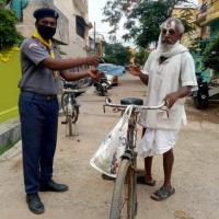 they packed daily essential items like oil, rice, dal, potato, biscuit and face mask to them with maintaining proper social distance.