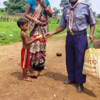 another members from other district were started awareness on carona virus by distributing informative leaflets with proper demonstration of hand washing procedure & how to mantain social distance in gathering they also distributed facemask to the needy people at the village area.