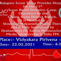 Our Scout School (Dr. Rajaguru Scout School) was able to successfully host the annual blood donation camp of Chilaw Scout District Branch which was held for the 11th time on 22nd of February 2021, to celebrate the 164th Founder's Day. This was the first event of the day and was organised by our Scout School under the leadership of our C.E.O. Dr. Champika Roshan Lowe and the Assistant District Commissioner - Media, Messenger of Peace District Coordinator and Vice Principal of Dr. Rajaguru Scout School, Miss. W. Nawoda Chamalki Lowe.