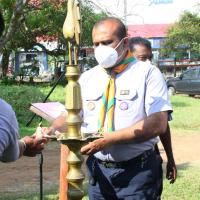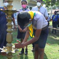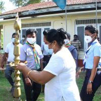 The programme was started with religious observances and commemorating Lord Barden Powell. Mrs. Sahida Hettiarachchi who is an Advisor of Mr. Arundika Fernando - the State Minister of "Coconut, Kithul and Palmyrah Cultivation, Promotion and Related Industrial Product Manufacturing & Export Diversification", an Advisor of Mr. Ajith Nivard Cabraal - the State of Money, Capital Markets and State Enterprise Reforms and the Colombo District Director of All Ceylon Human Rights Federation was present as the Cheif guest of the camp. Mr. Nalin Ravindra, Chilaw Scout District Commissioner and Mr. Hilary Prasanna, Attorney at law, Chairman of Chilaw District Scout Association also joined to the camp. After the opening ceremony while the blood donation camp was happening, the Scouts were taken to Dr. Rajaguru Scout School Premises which is also the Headquarters of Chilaw District Scout Association, for the next event of the day.