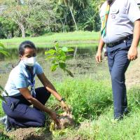 Finishing the blood donation camp, the Rover Scouts were taken near five lakes to plant native Arjun trees (Kumbuk) while giving a message "plant a tree for each tree you cut" to the society and they also planted some trees near a lake which was flowing near our Scout School Premisses.