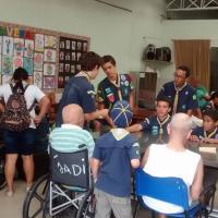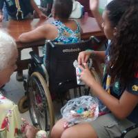 Os membros do grupo arrecadaram leite, fraldas geriátricas, creme dental, sabão de coco, sabonete, ataduras, gaze, entre outros donativos para o Asilo Casa Aliança e desenvolveram atividades recreativas com os vovozinhos (contaram histórias, jogaram baralho e dominó, pintaram as unhas e pentearam os cabelos das vovozinhas.