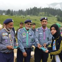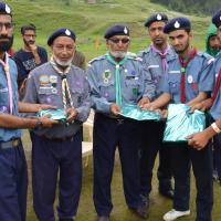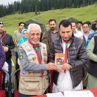 On 27th July, 2019 again it was cloudy and rainy. On that day sessions were conducted on First Aid, Patrol system and Scouting. The day was unique because all the major activities/programmes were conducted by Troop leaders from early morning to late afternoon. Their leadership qualities were highly visible in all the activities. On that day, the worthy State Chief Commissioner as paid a visit to the camp and blessed the participants. After lunch a colorful closing ceremony was organized and Mr. Farooq Ahmed Shah Sb. (Retd. IAS) (Vice President, J&K State Bharat Scouts and Guides) was the chief Guest and Mr. N. A. Khan Sb. (State Chief Commissioner) was Guest of Honour. Among others who attended included CEO, Gulmarg Development Authority. Worthy Chief Guest in his address appreciated the role of Scouting for bringing the positive changes in our society and also lauded the role of the organizers for organizing such camps with zest and zeal. He also underlined the steps being taken to spread the message of this noble movement to every corner of the state. He told the gathering that he is highly impressed that the scout movement is aiming to cultivate basic values such as Commitment, Conviction, Character, Courtesy and Cheerfulness in the young People which is the need of Honor. He assured full support and assistance required for growth and development of the movement in the state. Worthy State Chief Commissioner during the interaction with the participants shared some invaluable information about scouting and day to day life. He lauded the role of the movement in order to prepare the young people for life, to develop their character, to awake their spiritual adherence and to create the spirit of service and sacrifice in them. He assured that he would always be ready to lend his helping hand for the noble cause.