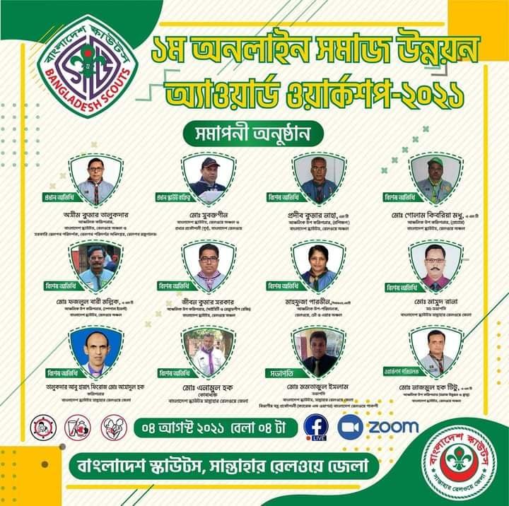 CD Award of Community Development Award is a major award in Scouting and Rovering. Bangladesh Scouts, Santahar Railway District Scouts Group organised a 4 day long virtual workshop that teaches scouts how to achieve the CD Award and necessary actions for it. The main inspiration behind my participation was the knowledge regarding CD Award.