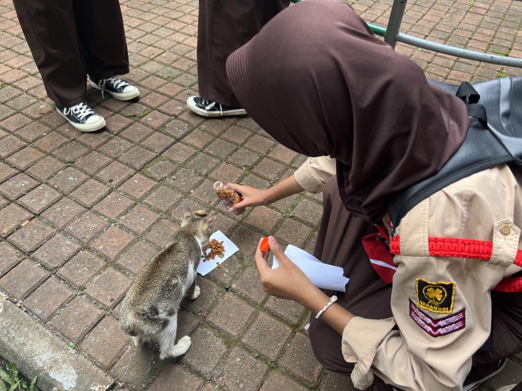 Merencanakan kegiatan yang bermanfaat bagi lingkungan, terutama hewan yang berada di lingkungan sekolah dengan memberikan makanan kepada kucing liar di area taman dekat sekolah