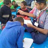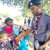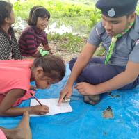 Master Da Surja Sen Rover Crew of N. F. Railway State Bharat Scouts and Guides Alipurduar Division, INDIA Organize a Literacy Drive called " Each One Teach One " at the village near Railway Filter House, Alipurduar Junction on 14/12/19.