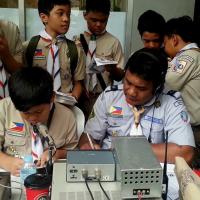 A 40 KAB Scouts visited the event and watched their older brothers talking to Scouts from all over the world. The Jamboree On The Air (JOTA) was conducted by Compass Circle Twenty-five Manila Council. JOTI, on the other hand, was manned by the Brighton Venturers Outfit 1012 and Asia Pacific Region (APR) Support Center staff that was held at the Executive Board Room. Scouts had fun exchanging JID codes from other scouts.