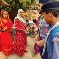 We 20 members decide together to do something for the people and all agree and give money. With that money we buy something to eat for the people. They are very happy to receive it.