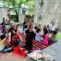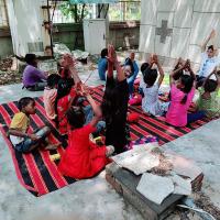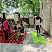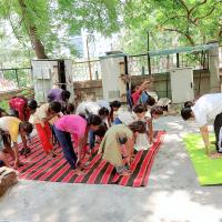 kiTo day celebrate international yoga day with small kids. Children performed yoga. Yoga will help them to keep their body fit and healthy ability strong. Children performed various types of yoga such as taadasana, garutdasana, kukkuasana, markatasana, anulomvilom, kapall bhati