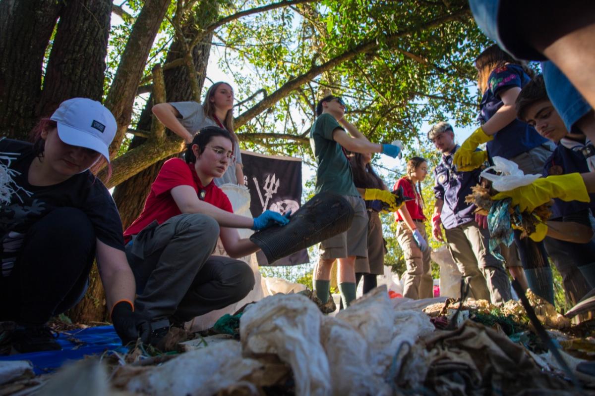 O Grupo Escoteiro Romano 350/RS, foi à cidade de São Leopoldo fazer a limpeza do Rio dos Sinos, junto da organização Sea Shepherd Brasil.
